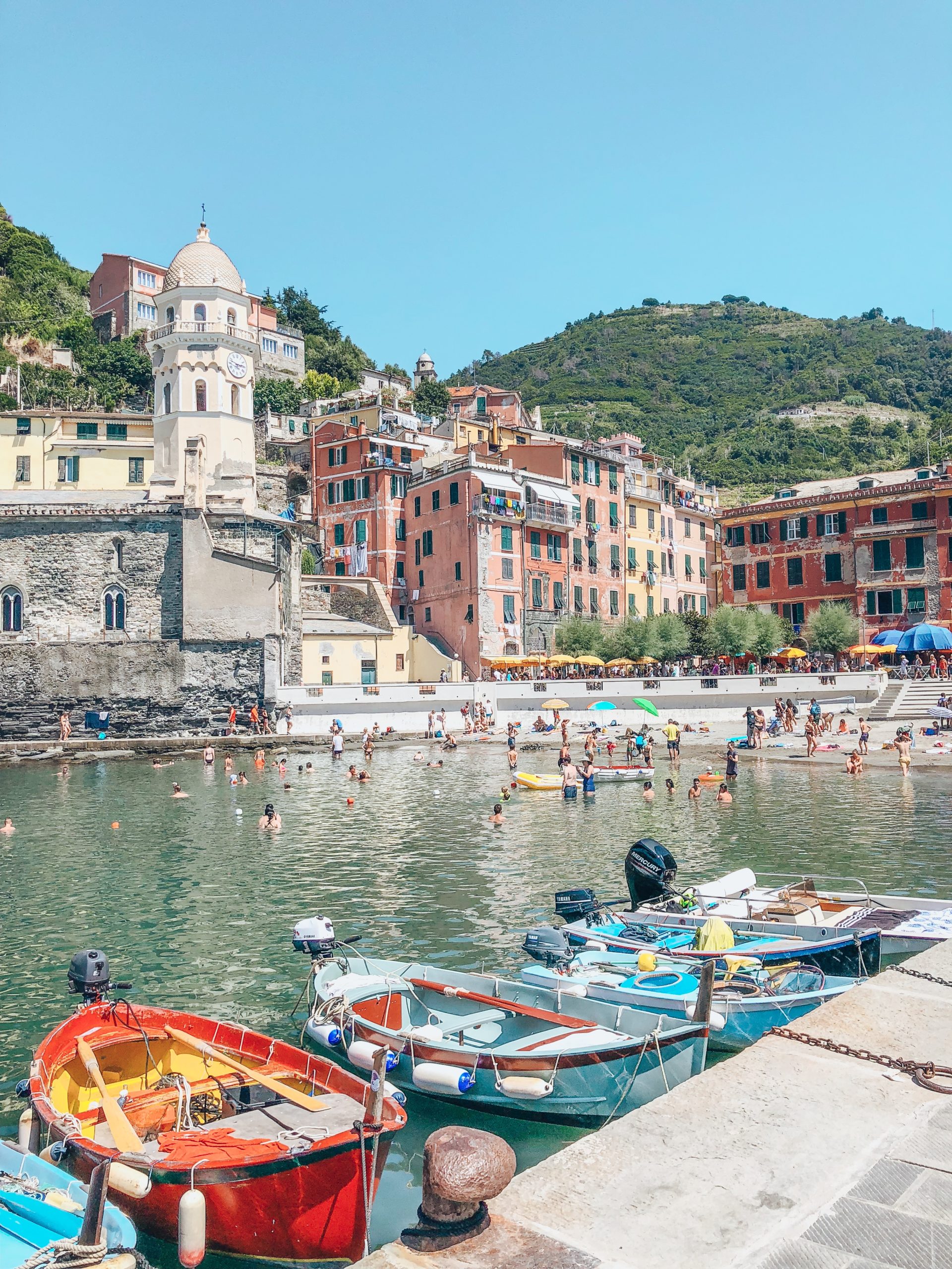 Pour se baigner, plusieurs options. Comme je vous le disais précédemment, seul Monterosso al Mare possède une grande plage de sable. Vous pouvez tout de même vous baigner dans les plages de galets de Riomaggiore et de Vernazza. Nous avons aussi vu des gens se baigner dans le petit port de Manarola, mais s’allonger sur le béton ce n’est pas vraiment mon truc. Aussi, pensez à prendre des chaussures de plage ou des tongs pour marcher sur les galets si vous êtes un peu sensibles.