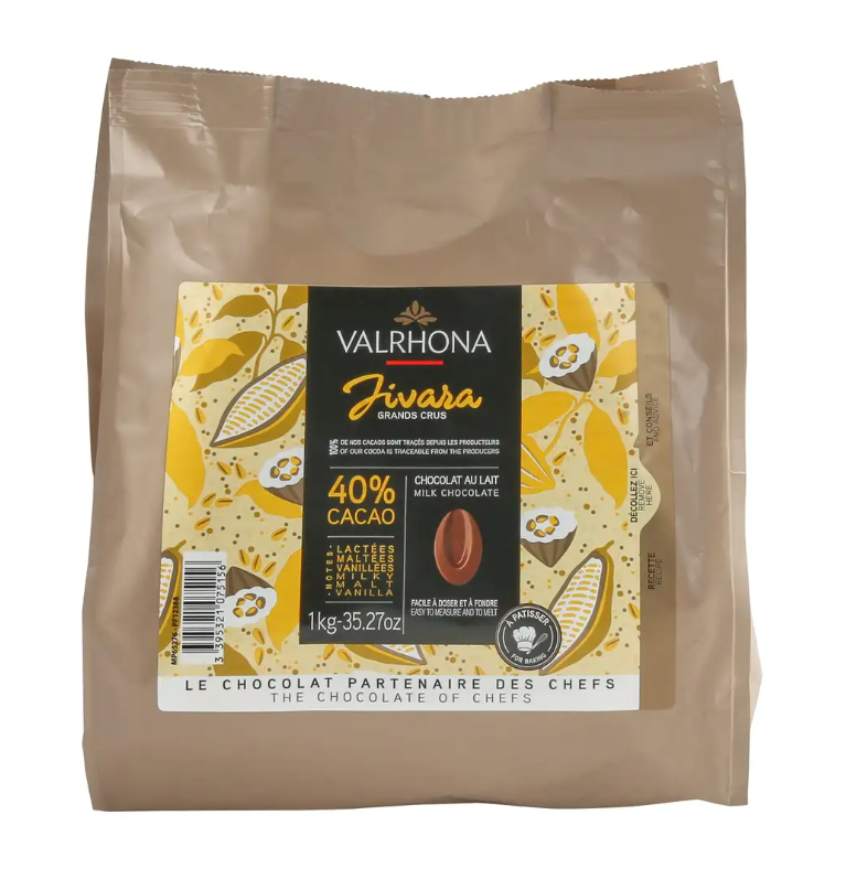 Avec son goût crémeux et cacaoté, le Jivara fonctionne très bien en crémeux ou en ganache et se marie bien avec les fruits exotiques et les fruits à coques.