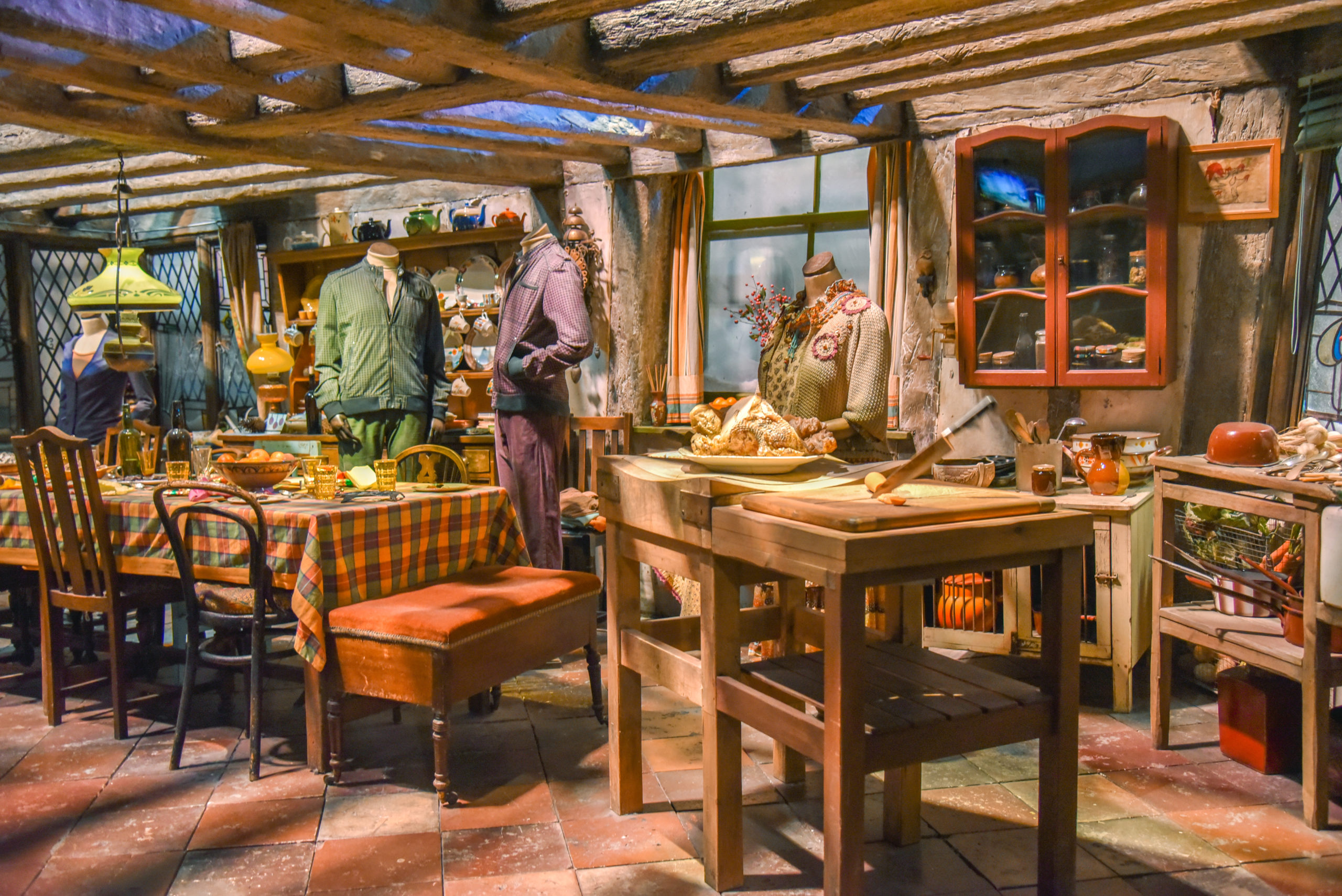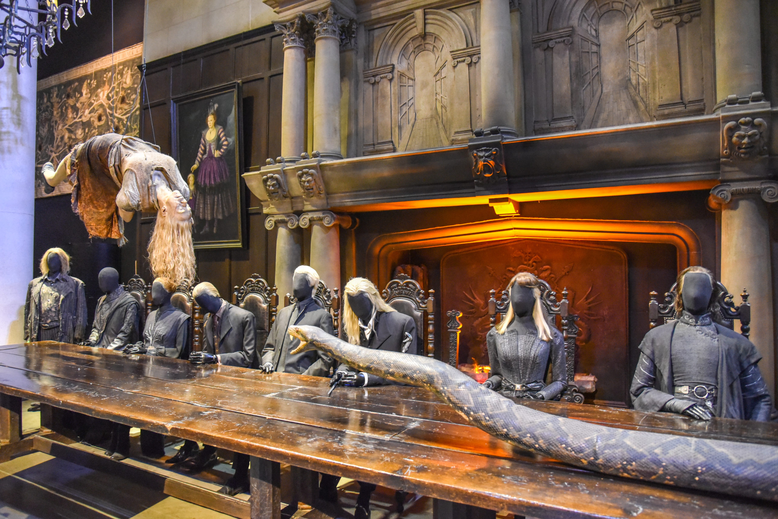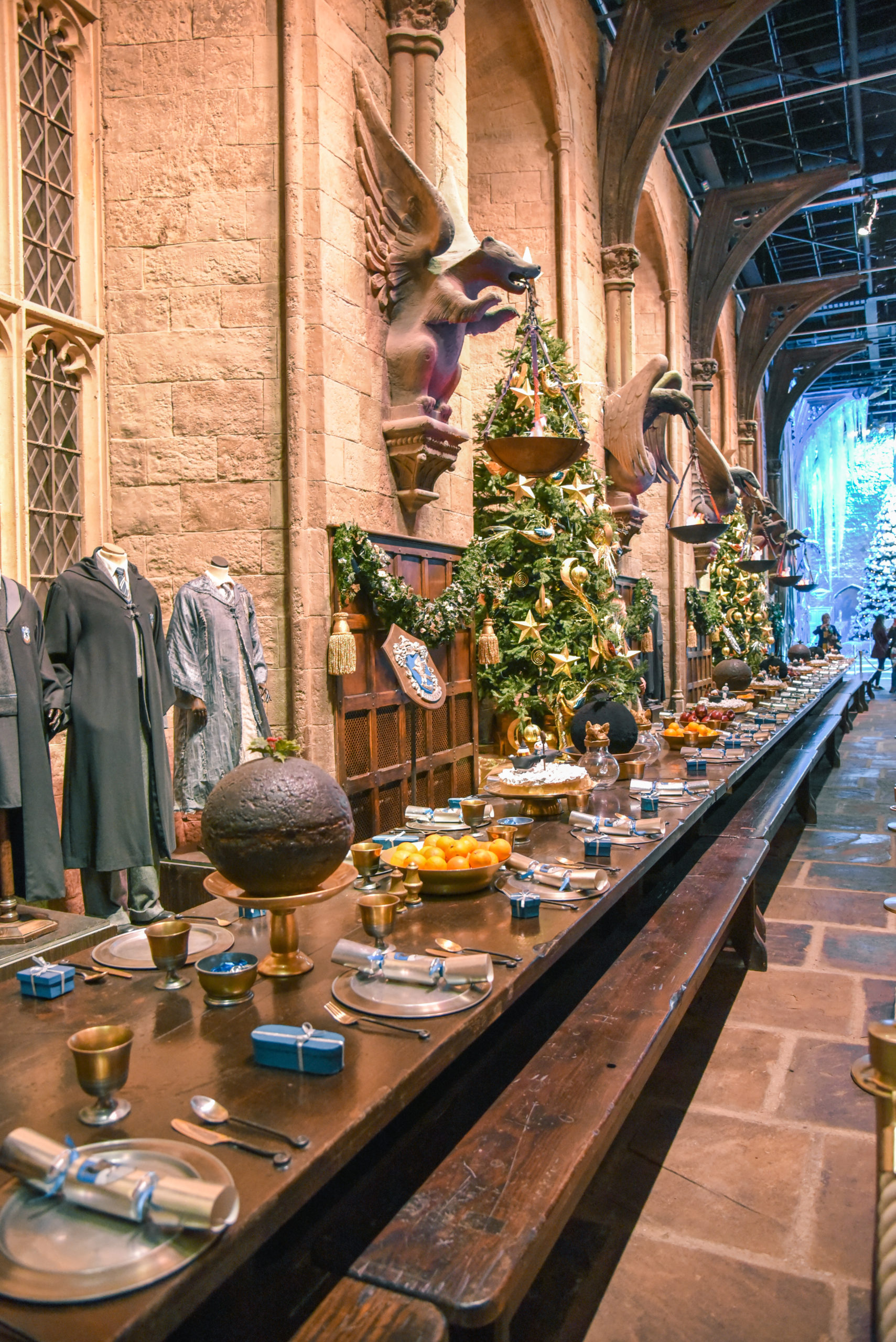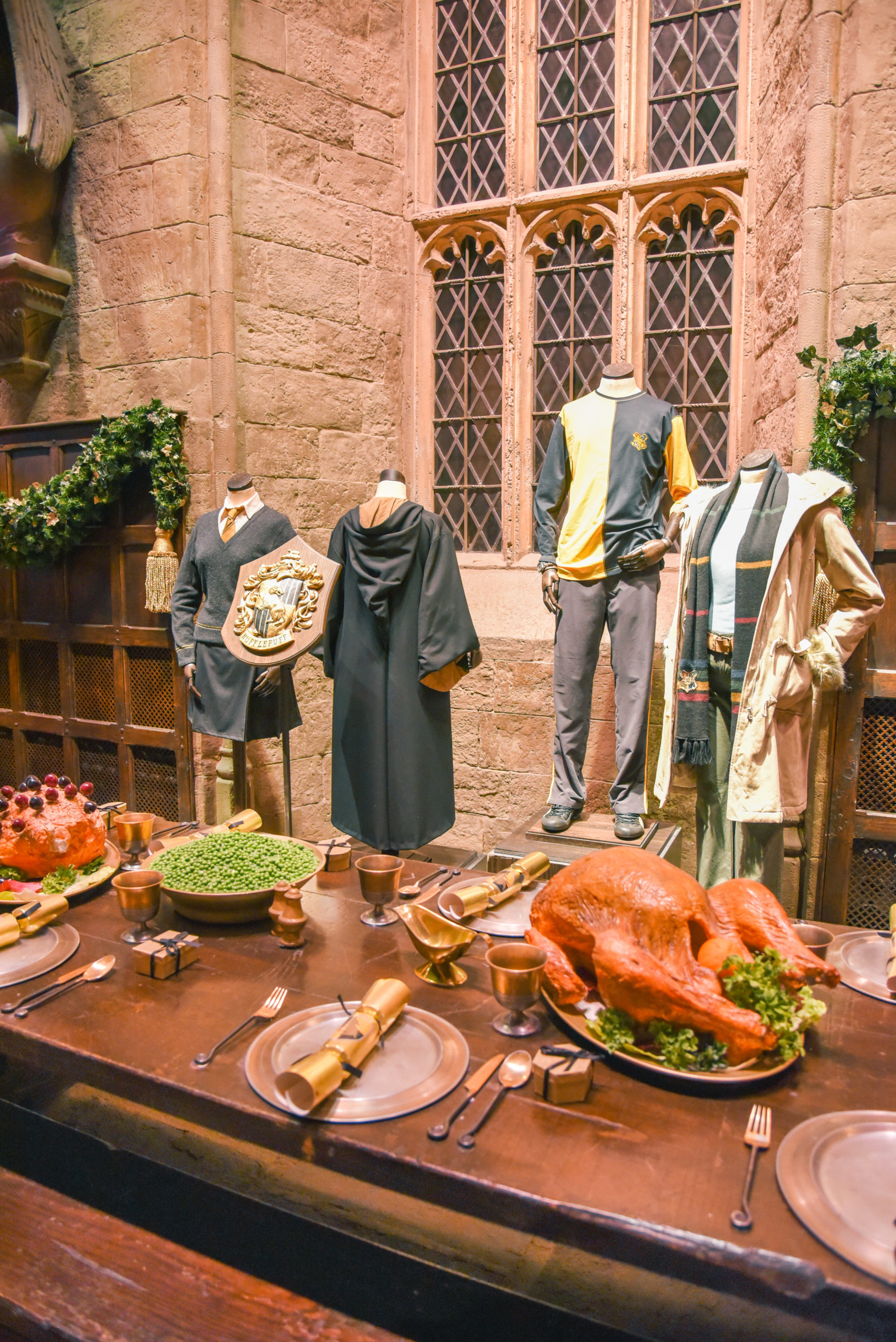 La visite des studios est relativement bien organisée. En effet, étant donné qu'il faut choisir un créneau horaire d'arrivée, la queue pour commencer la visite passe très rapidement. Après une rapide projection pendant laquelle les acteurs nous présentent tout le travail qui a été effectué par l'équipe lors des tournages, nous commençons notre visite par la Grande Salle. J'avais l'impression d'être transportée directement dans le film ! Il ne manquait que les bougies au plafond, mais tout y était pour rendre le lieu magique. Les tables étaient dressées comme lors du buffet de Noël, et chaque maison était représentée via différents costumes.